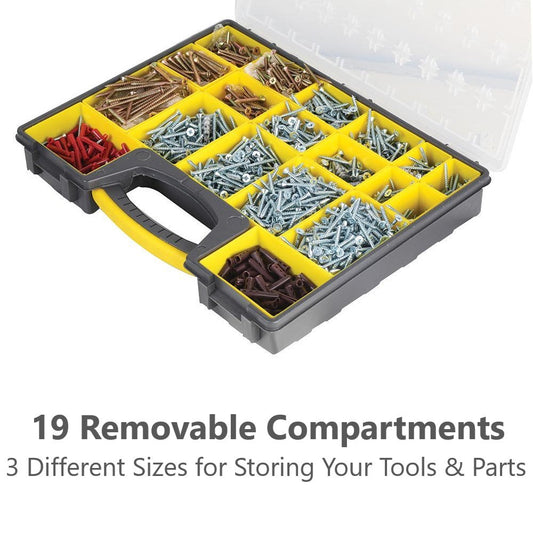 DURATOOL Hardware Bolt Screw Organizer Storage Box Case with 19 Removable Bins