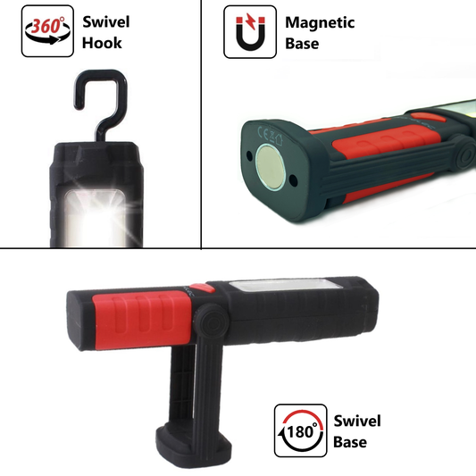 PRO-ELEC Portable LED Work Light, Pivot COB Magnetic Flashlight with 180° Swivel Magnet Base & 360° Hanging Hook, 250LM Super Bright Mechanic Car Emergency Flash Light, Battery Operated