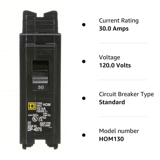 Square D 30 Amp Circuit Breaker HOM130 Homeline Single Pole, 120V